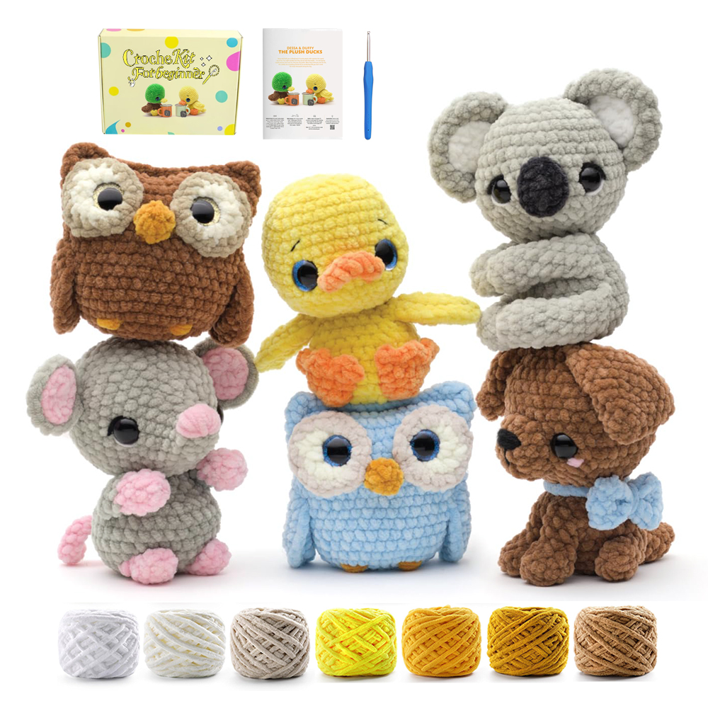 초보자를위한 크로 셰 뜨개질 키트 어린이를위한 단계별 비디오 자습서가있는 Amigurumi 크로 셰 뜨개질 동물 키트 성인 초보자